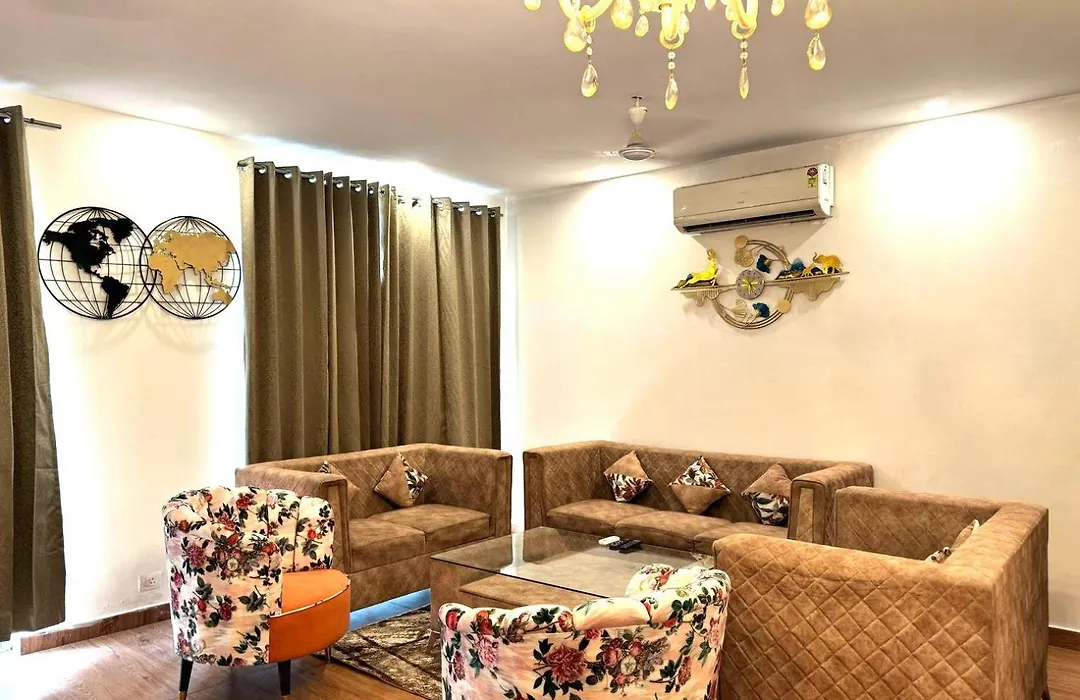 Kitchen facilities feature an electric kettle, a fridge and a washing machine. The restaurant Noshi Yum Asian Delivery is located at walking distance from this apartment. This 2-bedroom apartment is just 250 metres from the nearest bus stop Maidan Garhi Crossing.